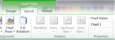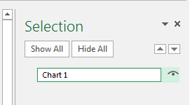 You can manually change the name of a embedded chart via the Name box. Although to get this to contain the charts name you have to select the chart as an object rather than have the chart selected. Hold the Shift key whilst selecting the chart. Notice that the subtle different in selection is denoted by the colour of the selection handles. They are white instead of the normal black. The current chart name is now displayed in the Name box and can be edited.There is a 32 character limit on the name when entering via the name box