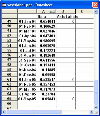 data labels of an additional data series to mimic the x-axis
